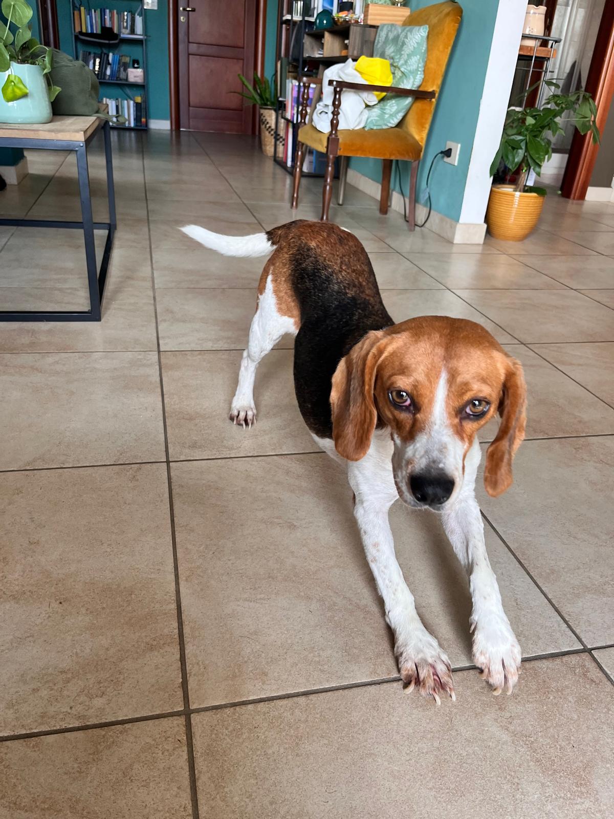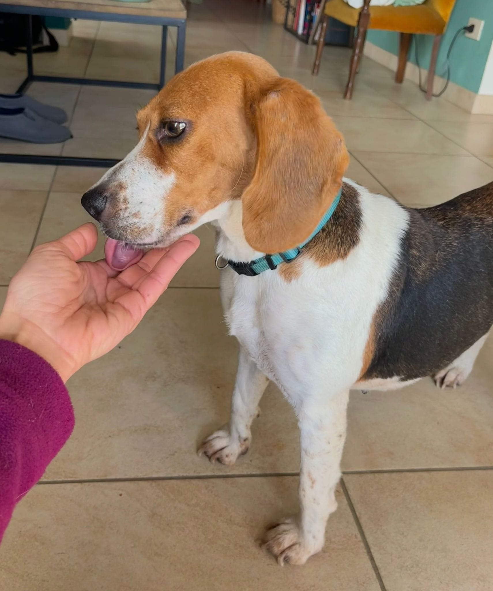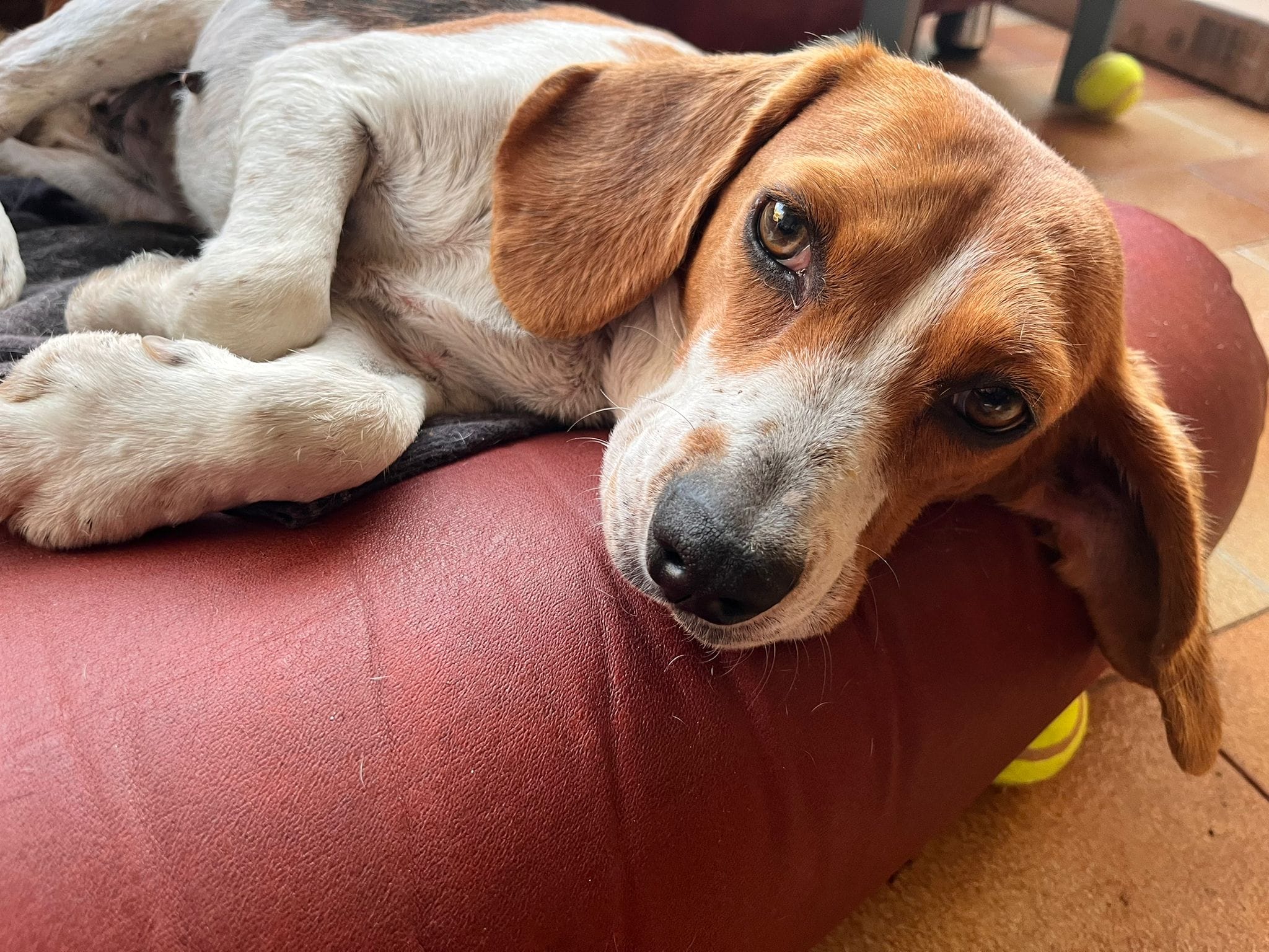 Nikita è una beagle di una dolcezza rara. Ha circa 4 anni, pesa 11 kg ed è una cagnolina calma, silenziosa e remissiva. Sta sul suo cuscino senza fiatare, è molto obbediente e ha occhi profondi ed espressivi che spezzano il cuore.