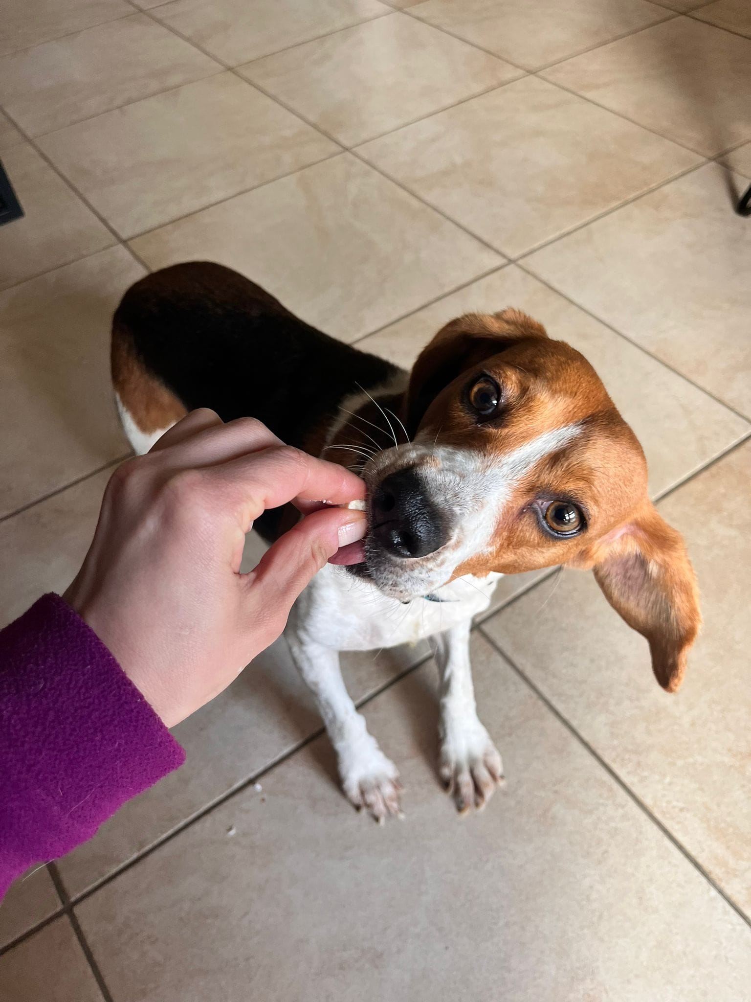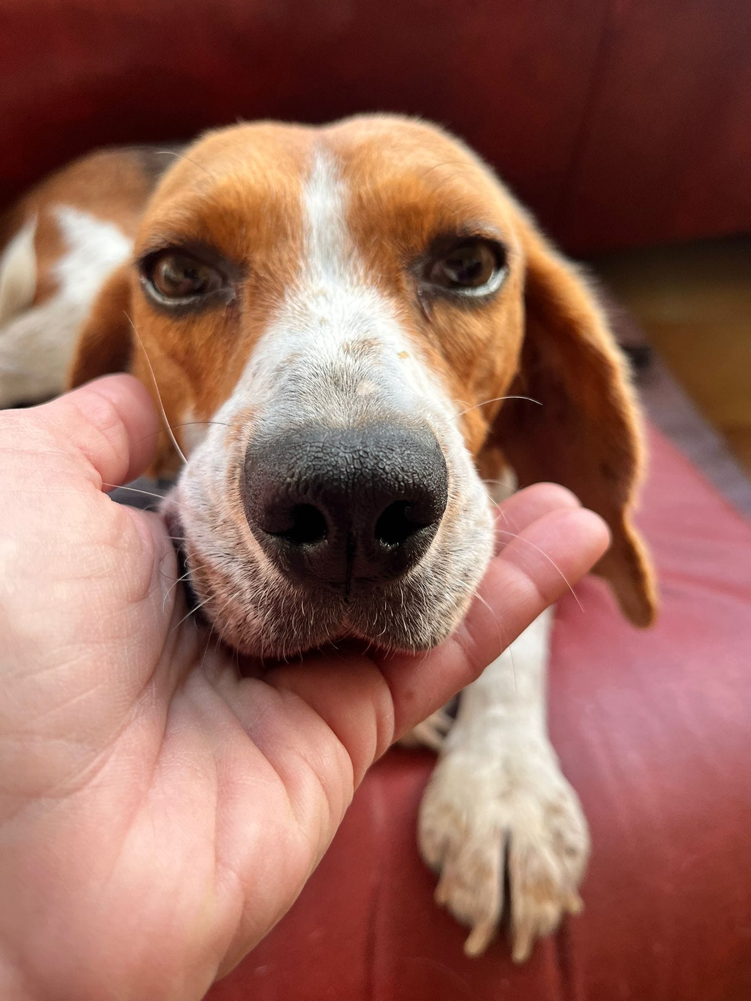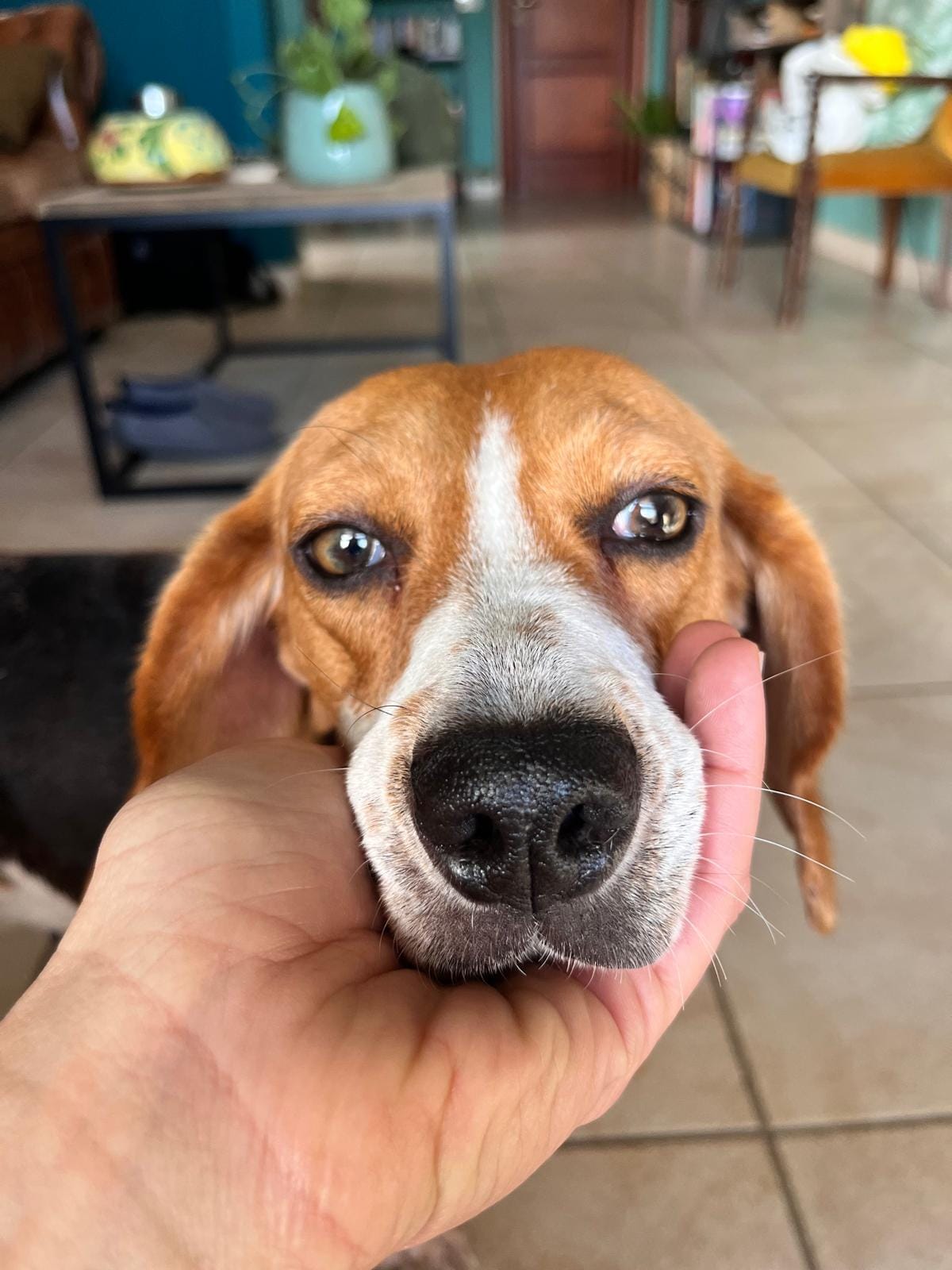 Nikita è una beagle di una dolcezza rara. Ha circa 4 anni, pesa 11 kg ed è una cagnolina calma, silenziosa e remissiva. Sta sul suo cuscino senza fiatare, è molto obbediente e ha occhi profondi ed espressivi che spezzano il cuore.